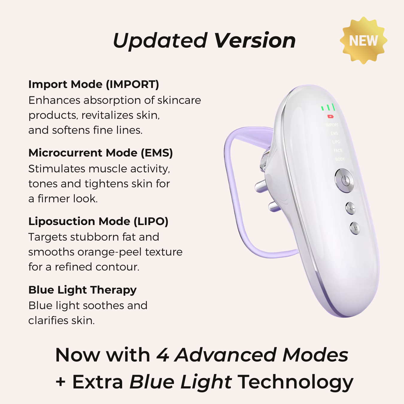 SculptCura™ helps tone and tighten the body, smooth the skin, and reactivates the natural glow. It supports collagen production, reduces the look of stubborn fat, and refines skin texture — all from home.